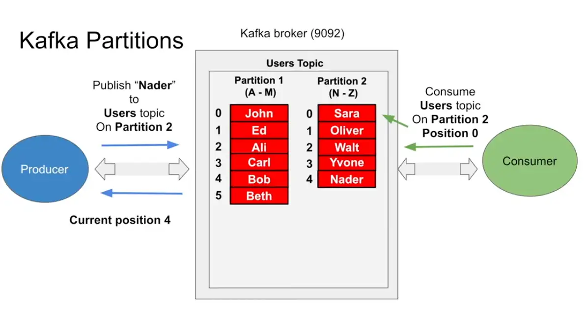 - All due to scalability factor the Producer should know about it, now when the producer writes to the partition it receives the position