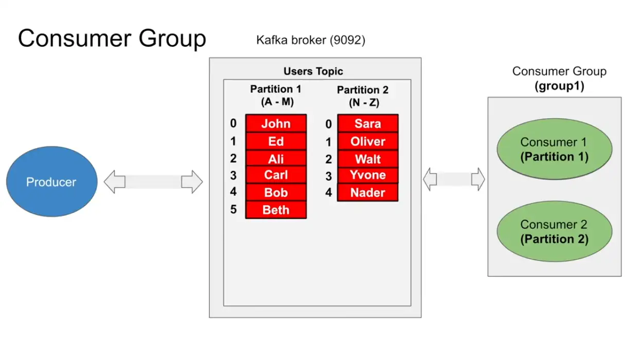 - Single consumer can read from partition 1,2 and more but each partition can only have one consumer only and consumer group makes sure of it