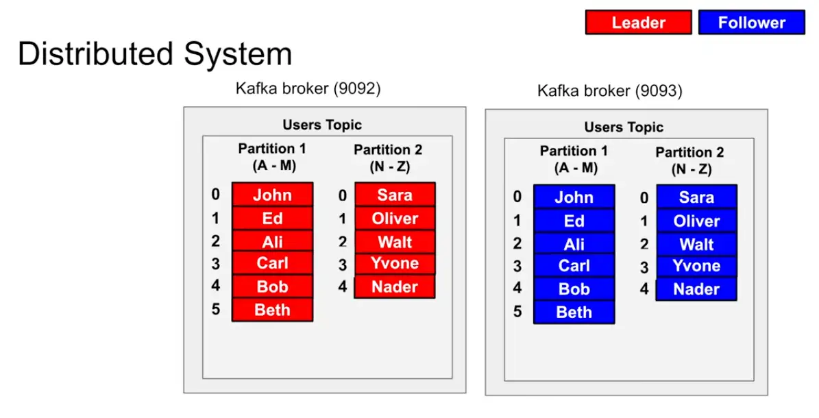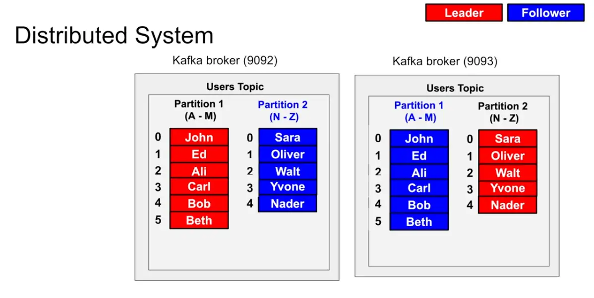 - Take a broker and copy it , and make it leader and follower system in which the leader takes in all the requests and the follower just reads from the leader