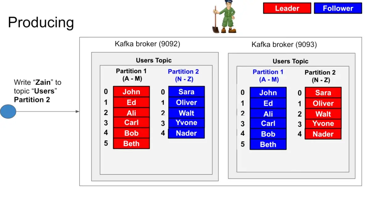 - Two different broker with one broker is leader of partition X and another broker is leader of partition Y