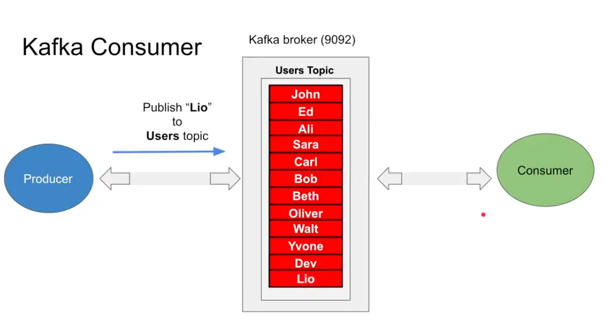 - Producer publish a message to a topic in the broker , which is append only in the topic and there is position operation which keeps a track of every message in the broker